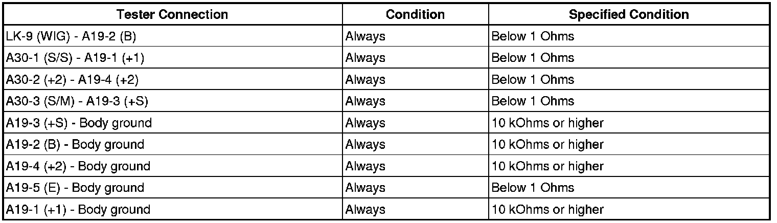 OK -- PROCEED TO NEXT CIRCUIT INSPECTION SHOWN IN PROBLEM SYMPTOMS TABLE