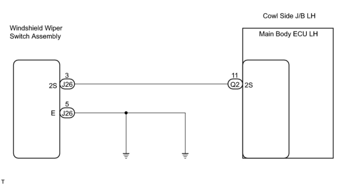 The main body ECU LH (cowl side J/B LH) receives a HI position signal from the windshield wiper switch assembly to operate the wiper motor at HI speed.