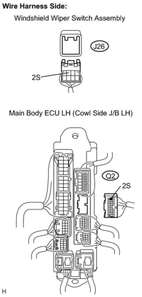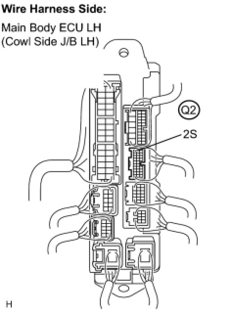 (a) Disconnect the Q2 main body ECU LH (cowl side J/B LH) connector.