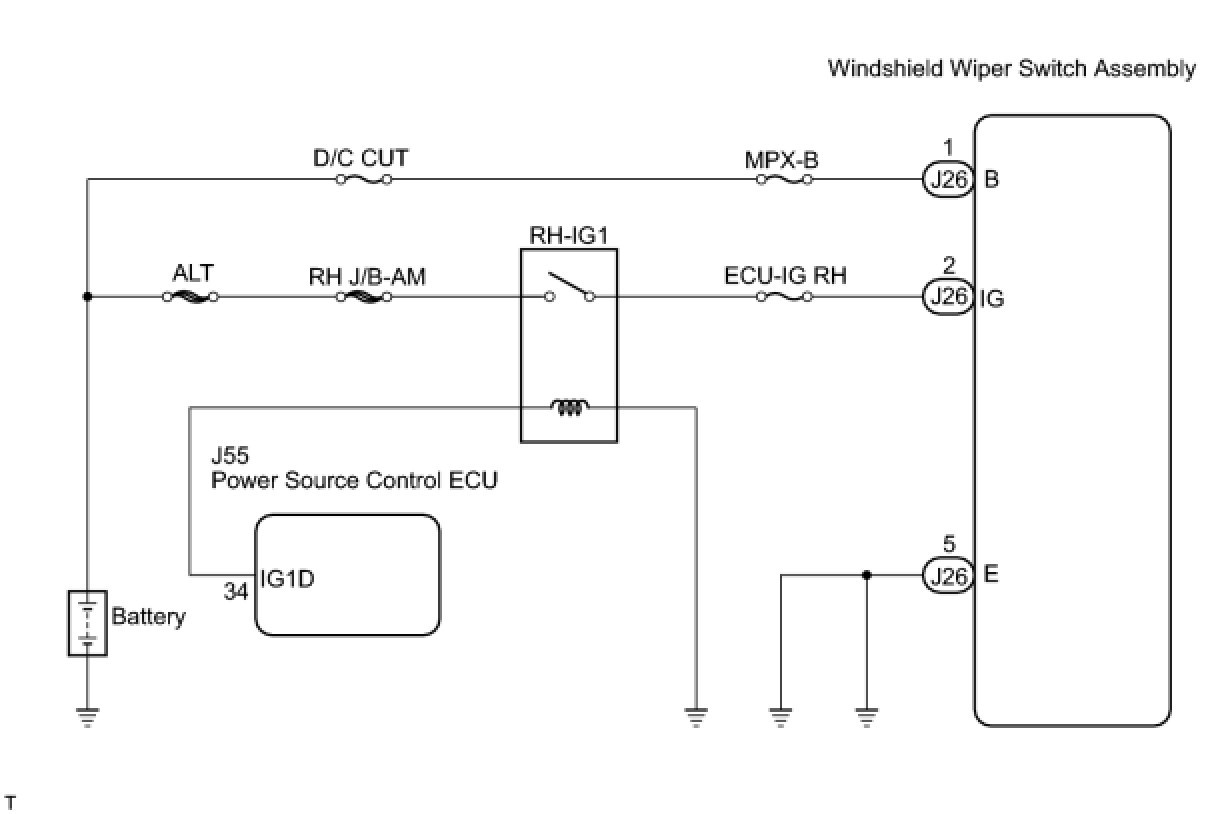 This circuit provides power to operate the windshield wiper switch assembly. The manual operation signals are sent to the main body ECU LH (cowl side J/B LH).