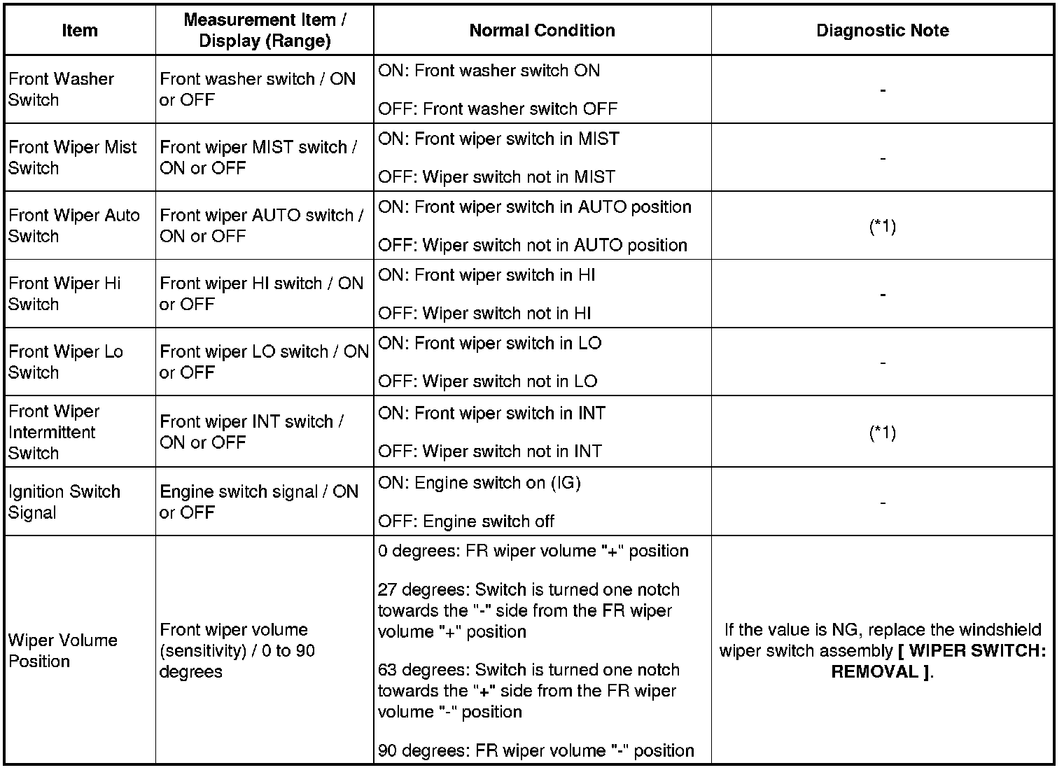 1. READ VALUE USING TECHSTREAM (WIPER SWITCH)