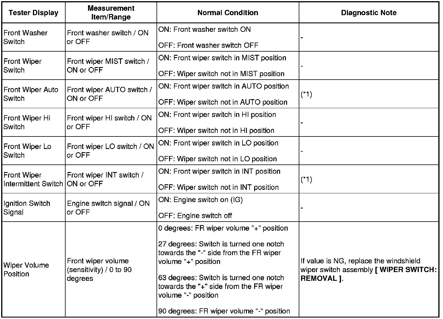 WIPER AND WASHER: WIPER AND WASHER SYSTEM: DATA LIST / ACTIVE TEST