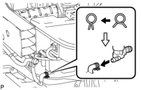 (b) Loosen the clip and disconnect the headlight cleaner hose.