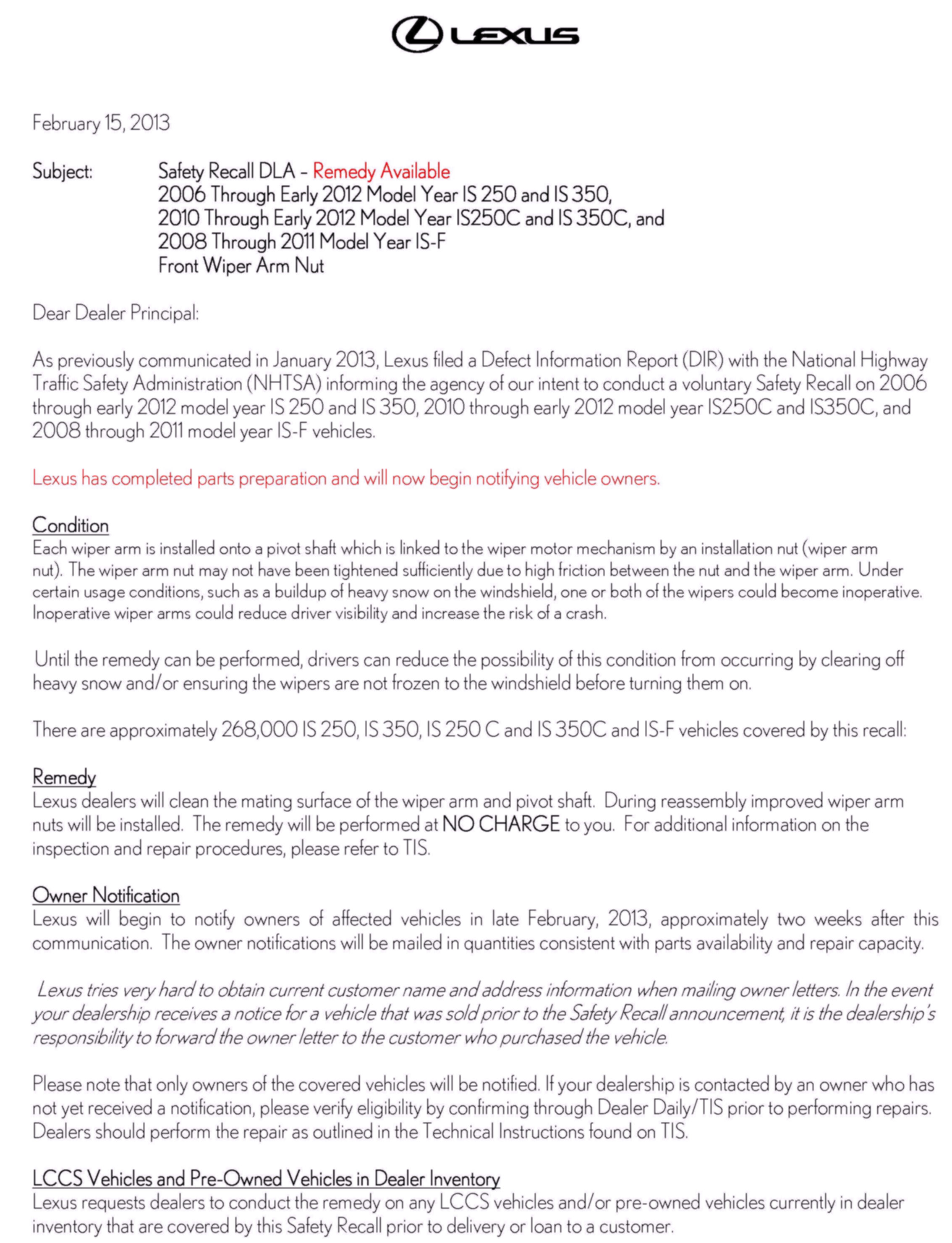 Dealer Letter