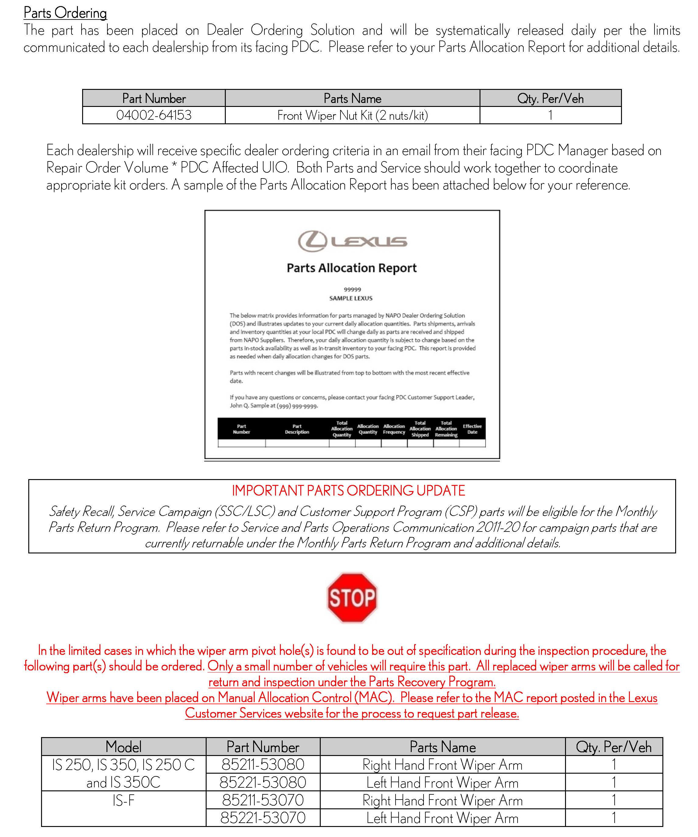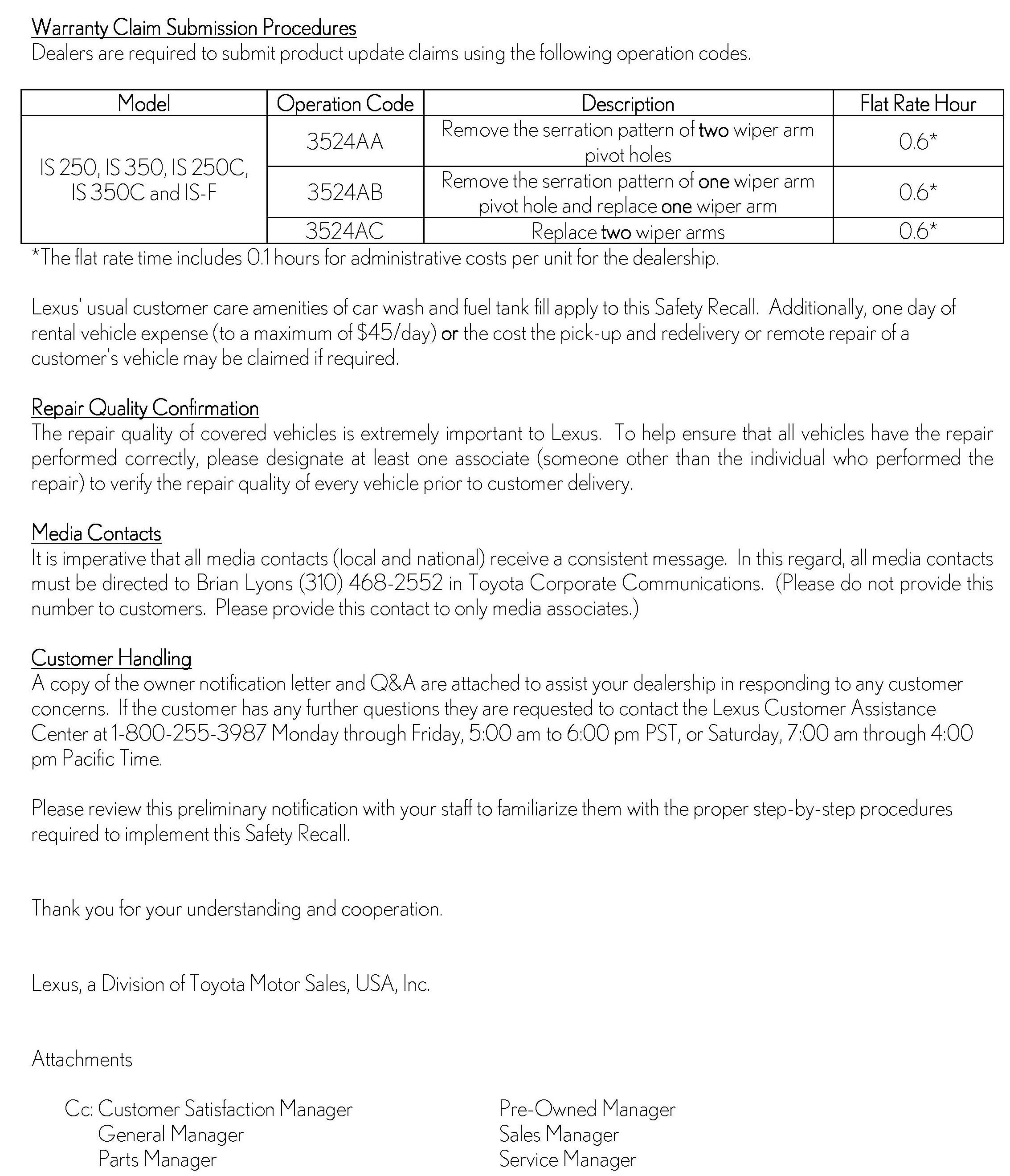 Recall - Wiper Arm Nut Torque