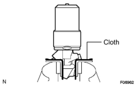 (a) Place the pump in a vise with a cloth, as shown in the illustration.