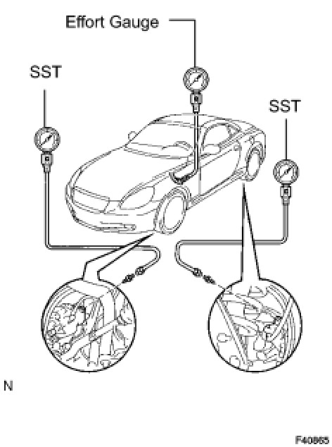 (c) Install an LSPV gauge (SST) and brake pedal effort gauge, and then bleed air.