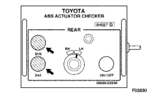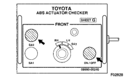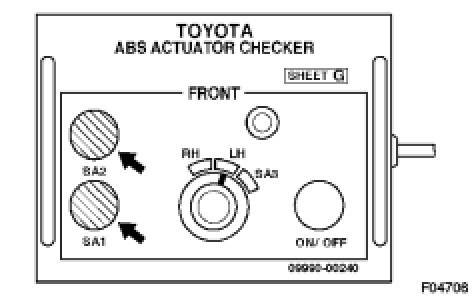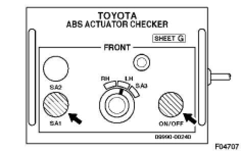 HINT: Connect the sub-wire harness S (SST) connector labeled "FRONT" to the actuator checker's connector.