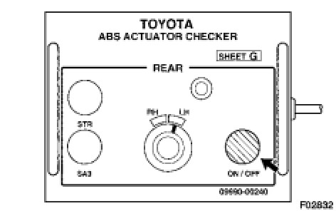 (6) Release the pedal. After depressing and holding the pedal with a constant force, turn the ABS Solenoid (SFLH) and ABS Solenoid (SFLR) solenoids ON simultaneously.