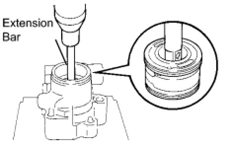 (d) Using an extension bar and press, press out the vane pump side plate front, vane pump cam ring, vane pump rotor, vane pump plates and vane pump side plate rear as an assembly.