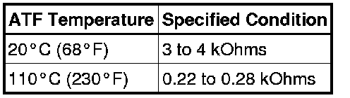 HINT: If the resistance is not within the specified range of either of the ATF temperatures shown in the table below, the driveability of the vehicle may decrease.