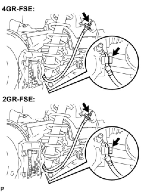 * When installing the rear brake flexible hose, face the identification mark to the outside of the vehicle and minimize twisting of the hose.