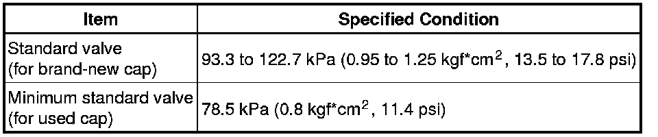 (7) If the maximum pressure is less than the minimum standard valve, replace the radiator cap sub-assembly.