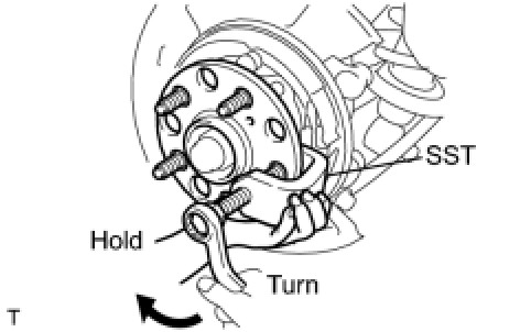 (a) Using SST, remove the rear axle hub bolt.