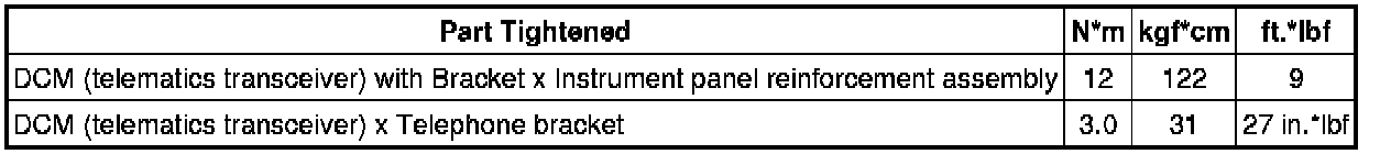 SPECIFICATIONS: CELLULAR COMMUNICATION: TORQUE SPECIFICATIONS