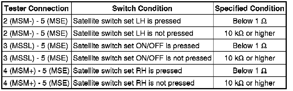 If the value is not as specified, replace the satellite switch Removal.
