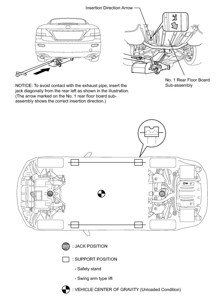 (c) Set the jack and safety stands exactly under the specified locations on the vehicle.