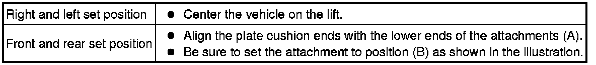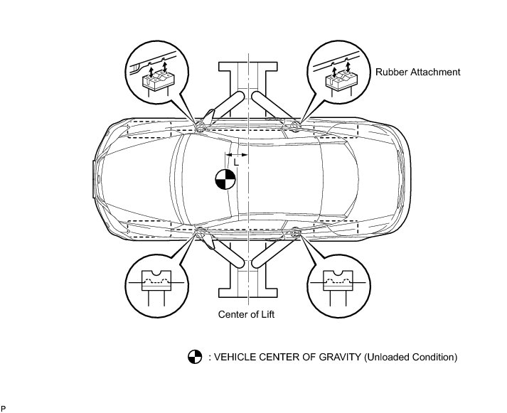 (c) Position the vehicle so that its center of gravity is centered on the lift (length of "L" in the illustration should be as short as possible).