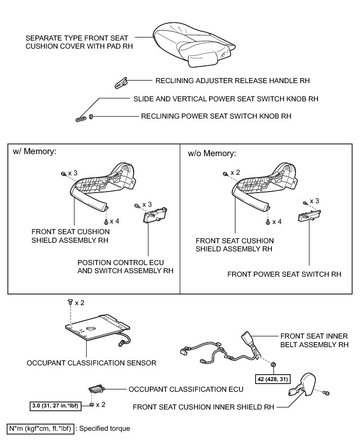 SUPPLEMENTAL RESTRAINT SYSTEMS: FRONT SEAT CUSHION ASSEMBLY (W/ Occupant Classification ECU, Occupant Classification Sensor): COMPONENTS