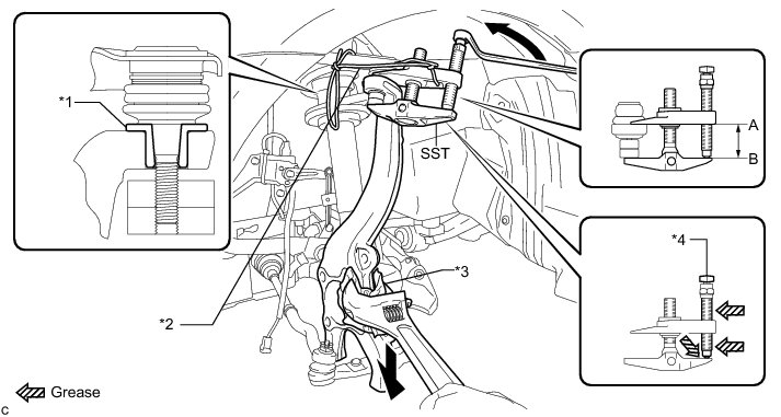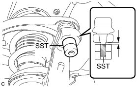 * Make sure that SST is securely positioned on the steering knuckle spacer.
