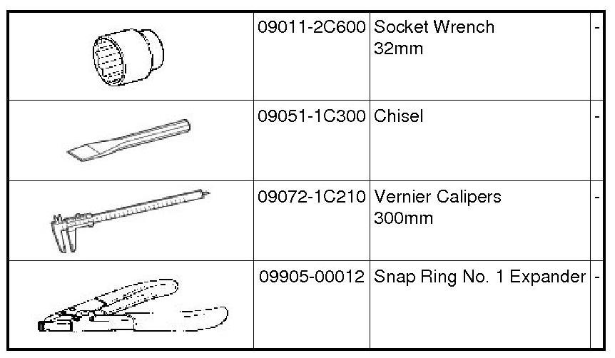 PREPARATION: DRIVE SHAFT / PROPELLER SHAFT: RECOMMENDED TOOLS