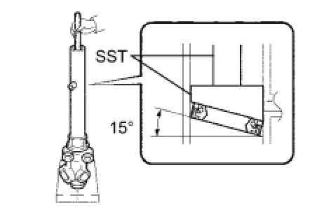 Install the oil seal so that the port faces downward approximately. 15 degrees.