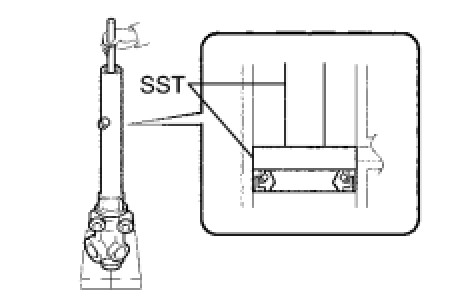 (b) Using SST, push in the oil seal by hand until it passes through the 2 ports.