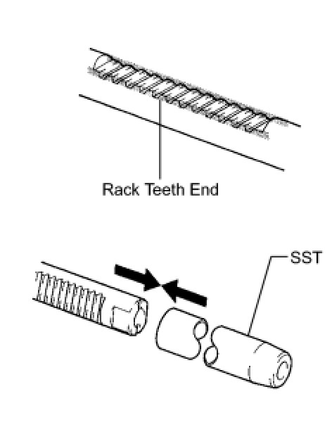 (a) To prevent the steering rack teeth from damaging the oil seal lip, temporarily install the RH and LH steering rack ends.