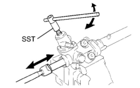 (d) Using SST, turn the control valve shaft right and left 1 or 2 times. The rack end will move in and out.