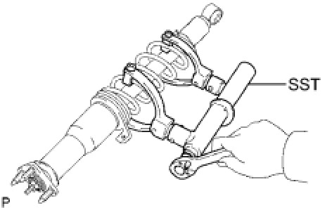 (b) SST Install the coil spring to the shock absorber. Fit the lower end of the coil spring into the recess of the spring seat of the shock absorber.