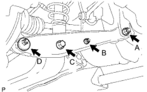 (b) Fix the bolt on the rear suspension member side, and loosen the nut labeled A.