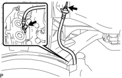 (b) Connect the brake tube to front brake flexible hose with a SST while holding flexible hose with a wrench.