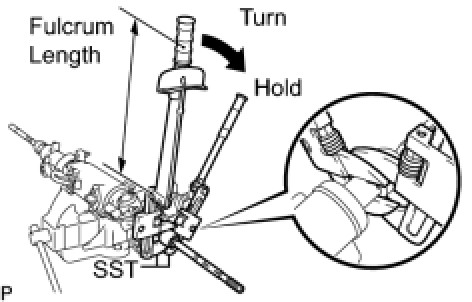 Using SST, hold the steering rack and install the steering rack end sub-assembly.