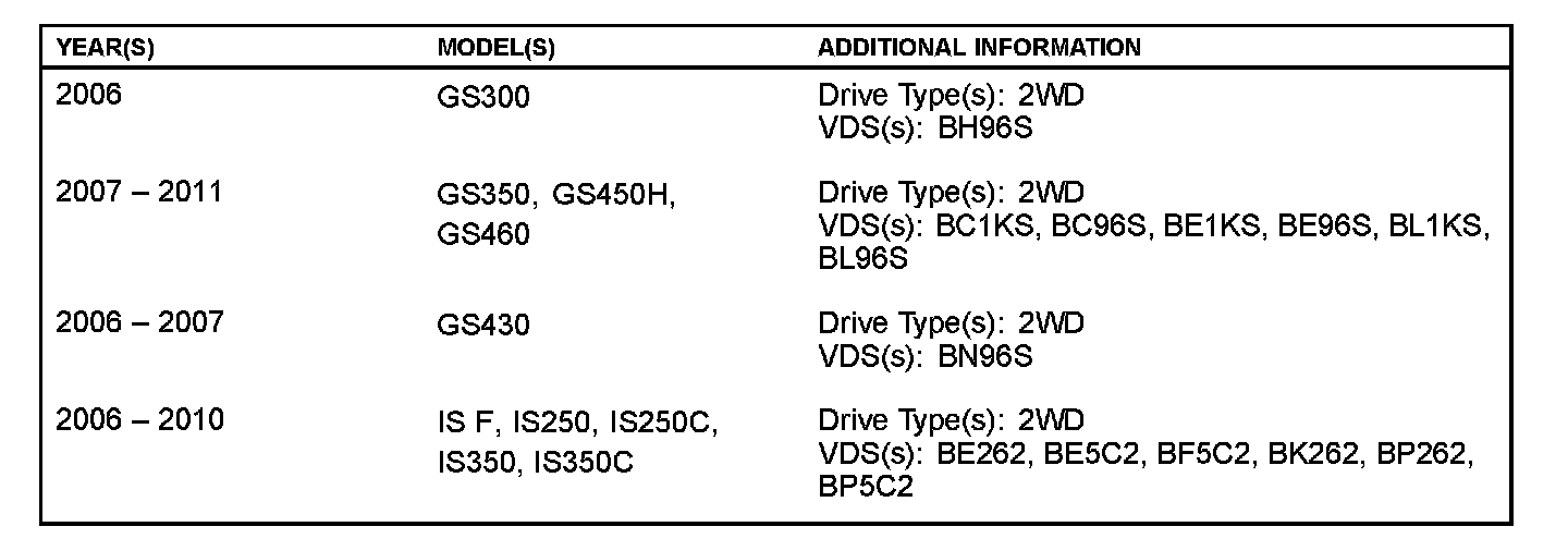 This TSIB applies to all 2006 model year G5300 and 2006 - 2007 model year G5430 vehicles and to vehicles produced BEFORE the Production Change Effective VINs shown.