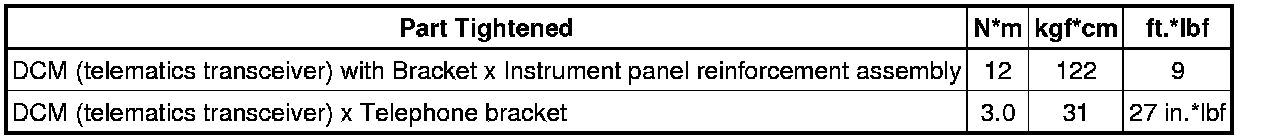 SPECIFICATIONS: CELLULAR COMMUNICATION: TORQUE SPECIFICATIONS