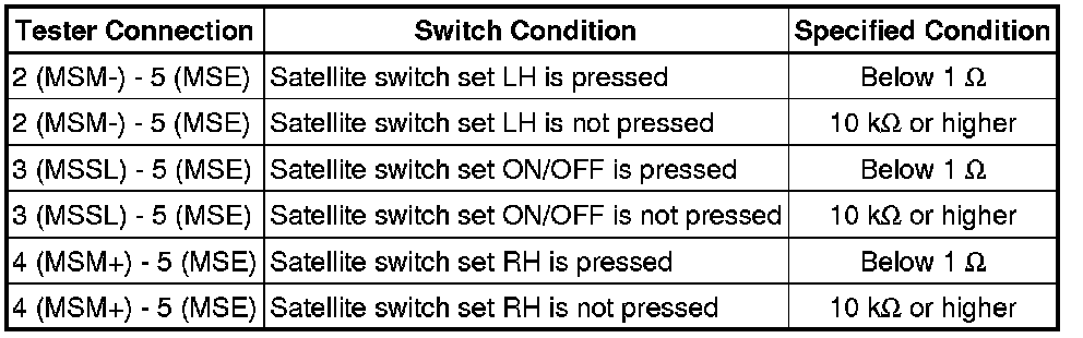 METER / GAUGE / DISPLAY: SATELLITE SWITCH: INSPECTION
