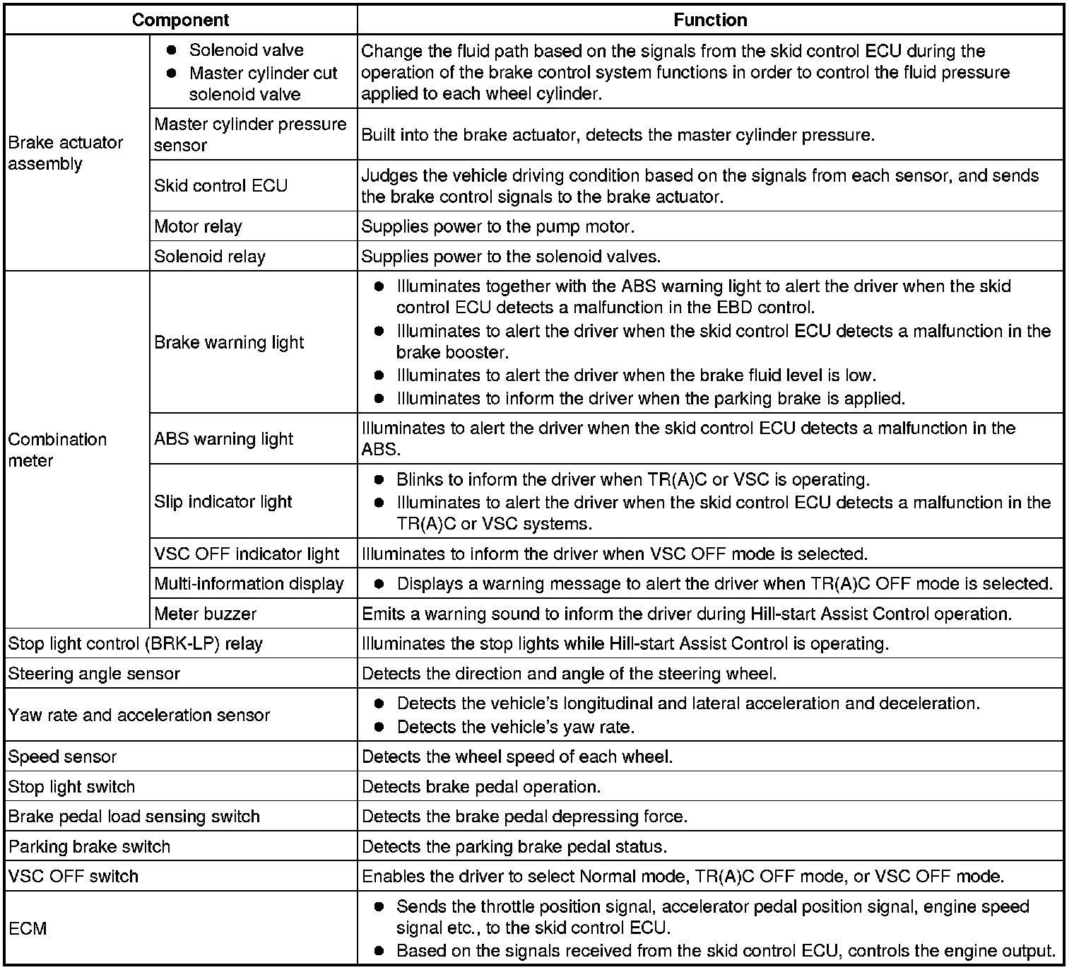(1) When the vehicle starts off on a steep or a slippery hill, Hill-start Assist Control performs 4-wheel hydraulic pressure control to prevent the vehicle from moving backward.