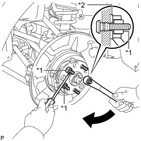 (a) Temporarily install 2 nuts to the rear axle hub bolt as shown in the illustration.