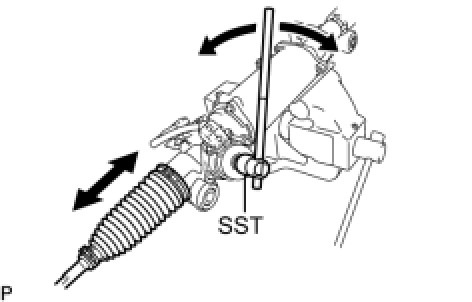(b) Using SST, turn the pinion and check that the rack boots expand and contract smoothly.
