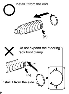* Do not expand the No. 1 steering rack boot clamp more than necessary for installation.