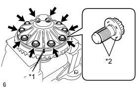 * Do not allow oil to adhere to the ring gear set bolt during installation.