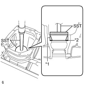 * Do not deform the bearing cage. Set SST to the center of the rear differential case sub-assembly.