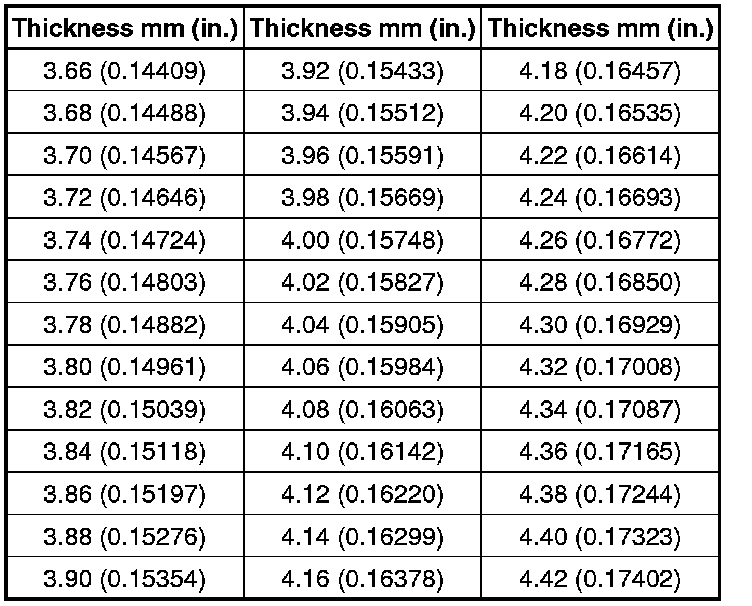 If the value is not within the specified range, replace it with one of a different thickness in the following procedure.