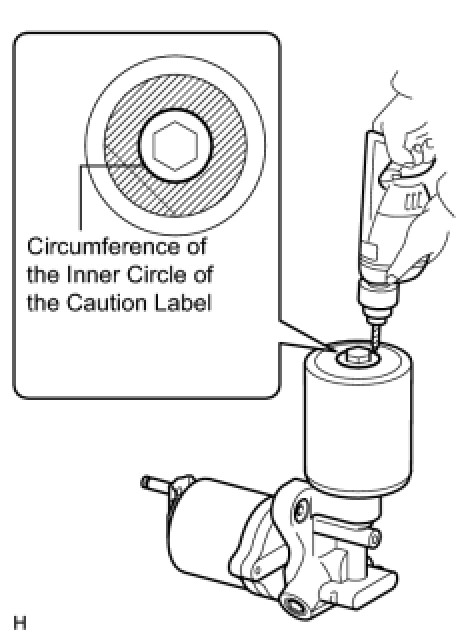 (a) Using a drill, slowly make a hole at the circumference of the inner circle of the caution label and discharge the gas.