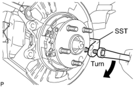 (a) Using SST, remove the rear axle hub bolt.