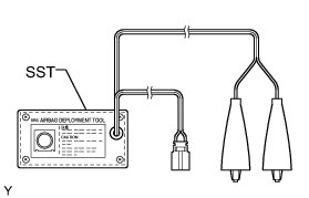 * When deploying the airbag, always use the specified SST (SRS Airbag Deployment Tool). Perform the operation in a place away from electrical noise.