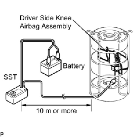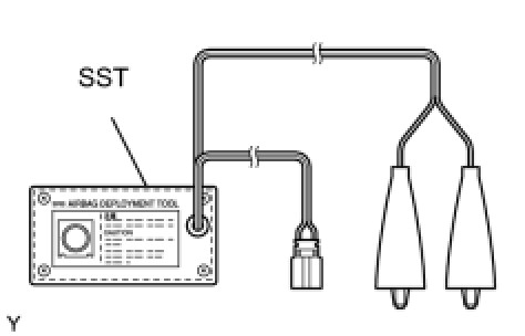 * When deploying the airbag, always use the specified SST (SRS Airbag Deployment Tool). Perform the operation in a place away from electrical noise.
