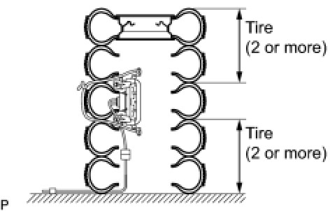 (1) Place at least 2 tires under the tire which the front passenger airbag is tied to.
