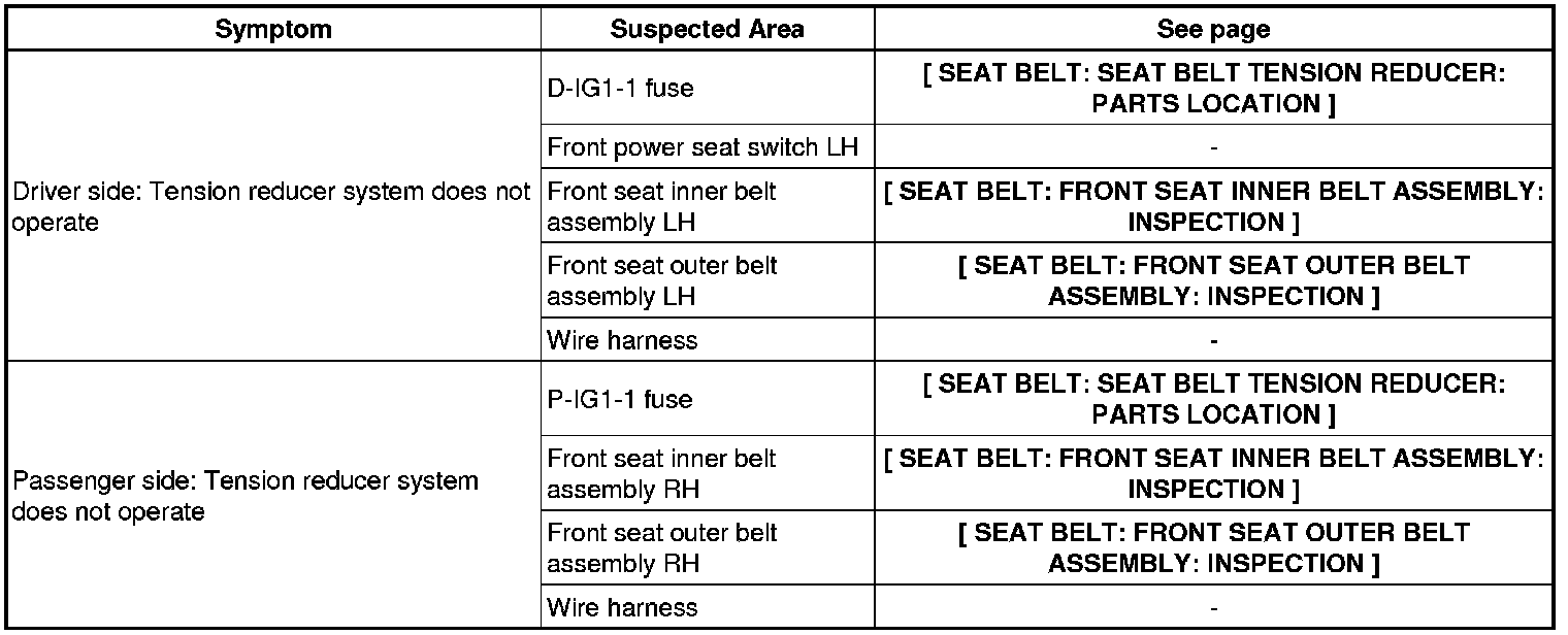 SEAT BELT: SEAT BELT TENSION REDUCER: PROBLEM SYMPTOMS TABLE
