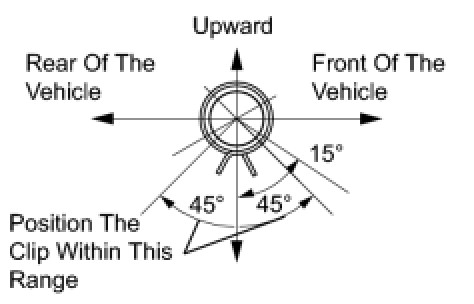 Make sure that the protrusion of the steering rack boot clamp is positioned within the area shown in the illustration.